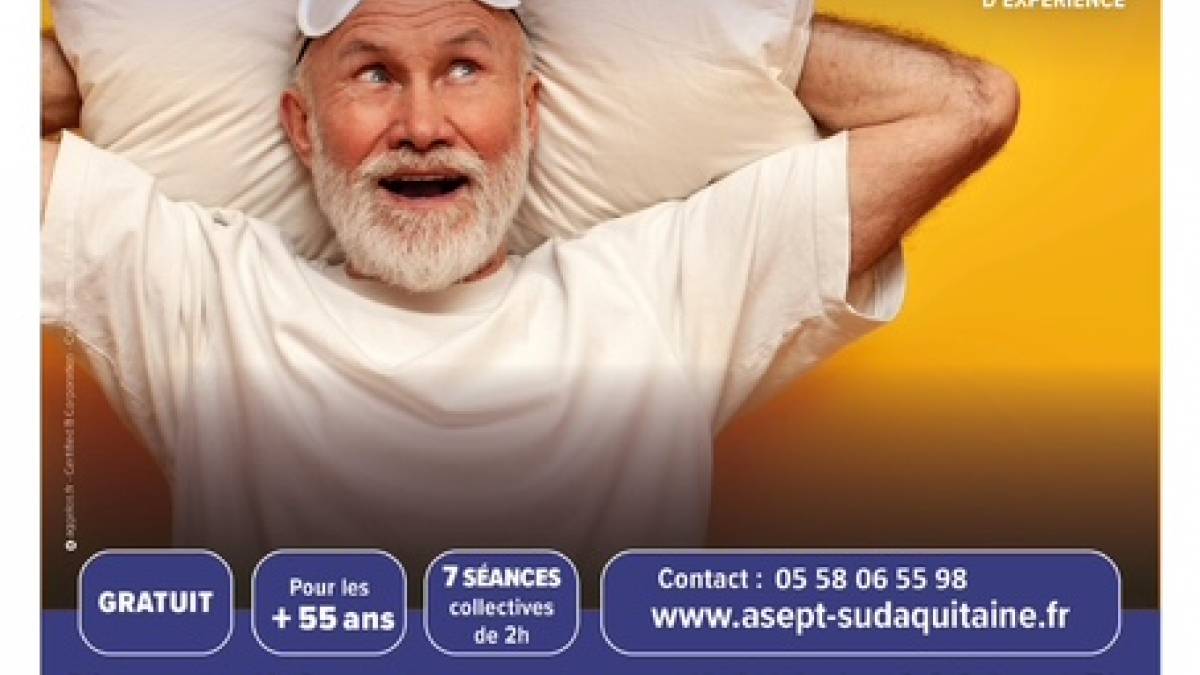 Le club des retraités d'Azur vous convie à 7 séances consacrées au sommeil. Elles s’adressent aux plus de 55 ans, auront lieu du mercredi 06 mai au mercredi 24 juin, Espace François Mitterrand, petite salle. Ces ateliers sont proposés gratuitement par l'ASEPT (Association Santé Éducation et Prévention sur les Territoires). Informations, conseils, partages d'expériences...